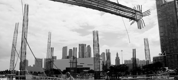 200,000 lbs of post tensioning cable, 300,000 sqft of mesh, link beams